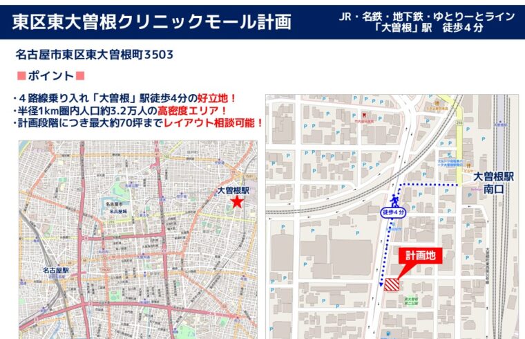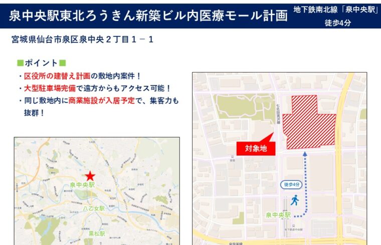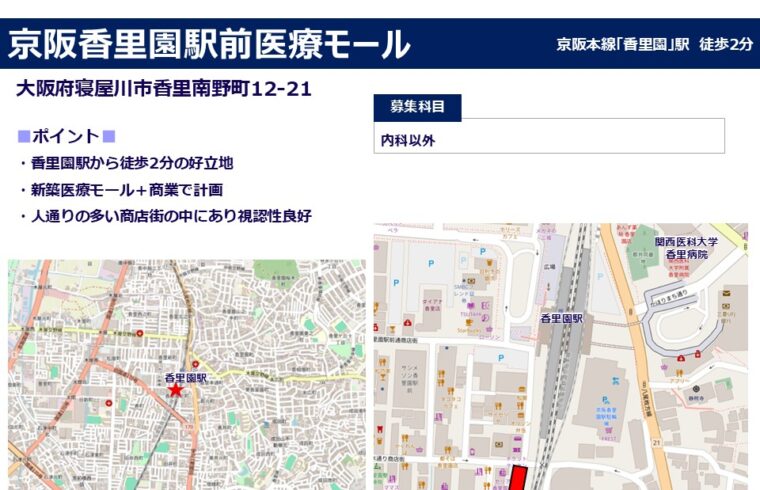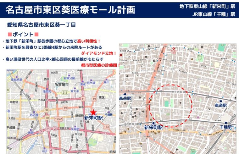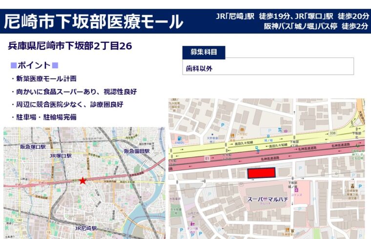 当社では、メディカルモールやメディカルビルなど複数の医療機関を同一敷地内にまとめることで、患者さまが専門医の診察を一箇所で複数受診できるという利便の良い形態の企画開発を行っています。開業する先生方にとっては、施設の共用によるコスト削減や、広報、集患面の相乗効果による効率的な経営が可能になります。