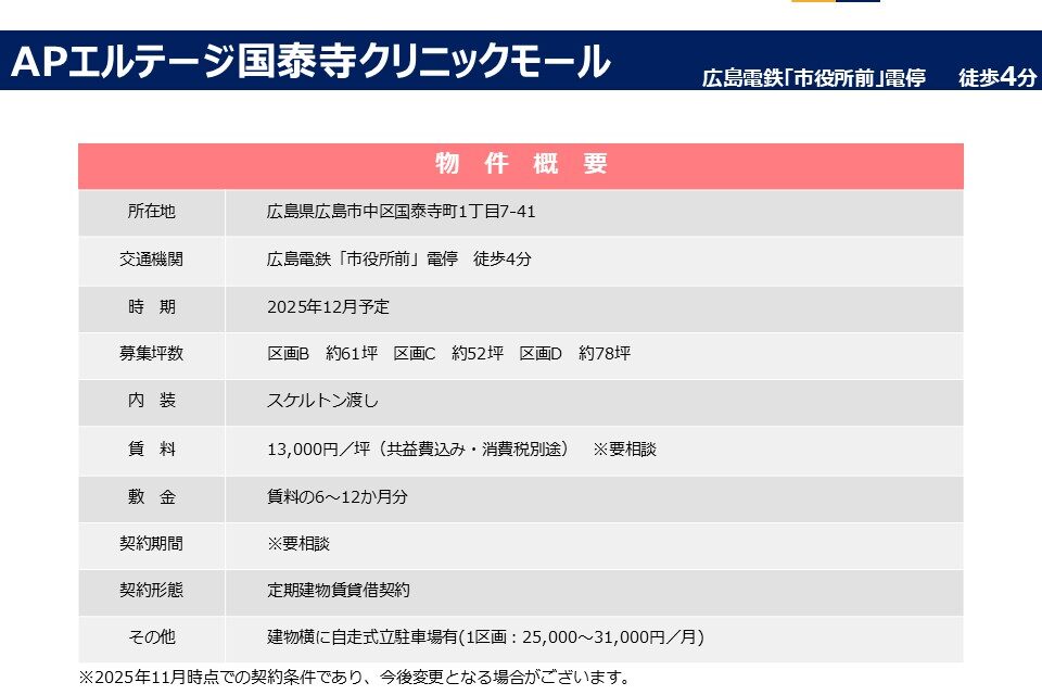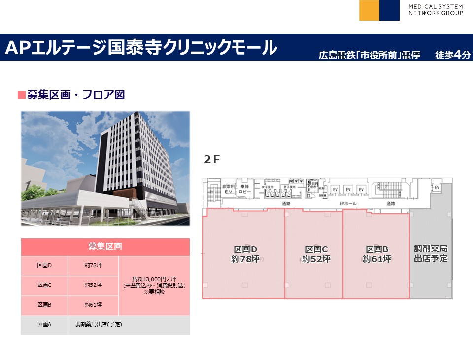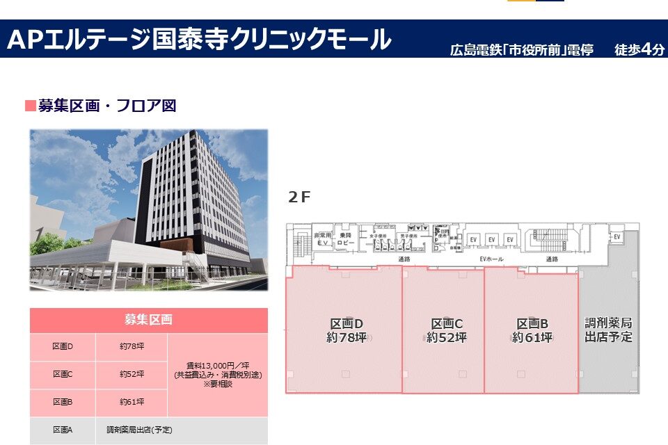 | その他 : | ・新築建て貸し案件!公的機関が入居予定! ・1階にスーパーマーケット入居予定! ・2階専用のエレベーターあり! |