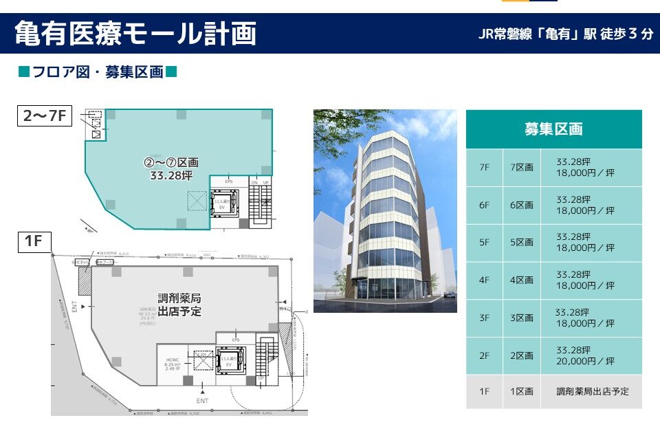 | 面積(坪) : | 2~7階 全6区画 各階33.28坪 |