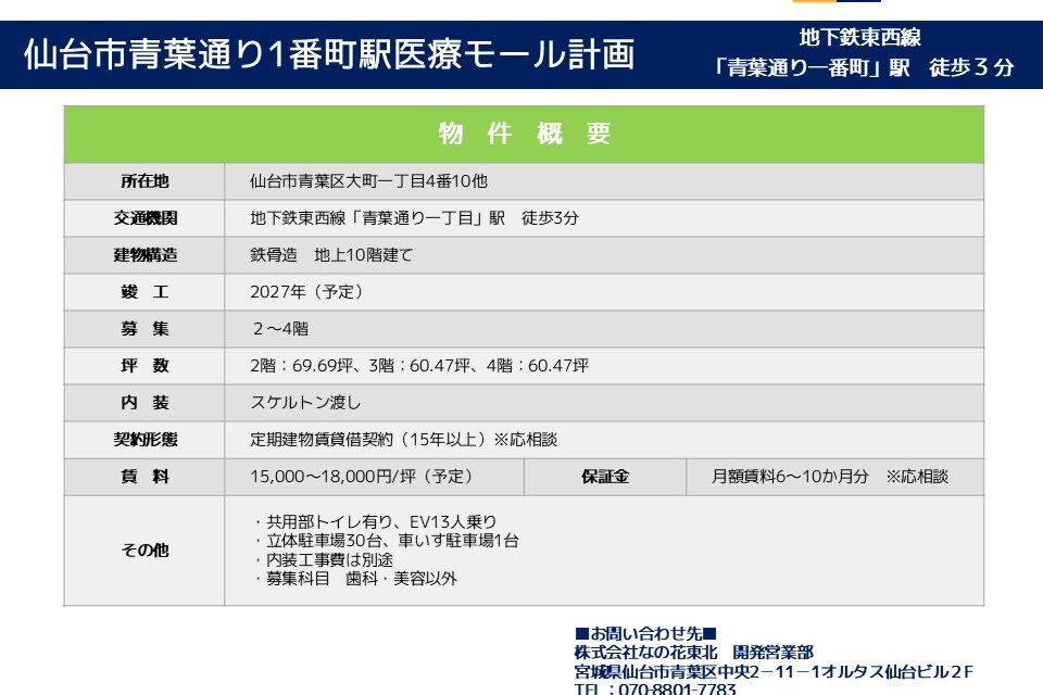 住 所: | 仙台市青葉区大町一丁目4番10他 |