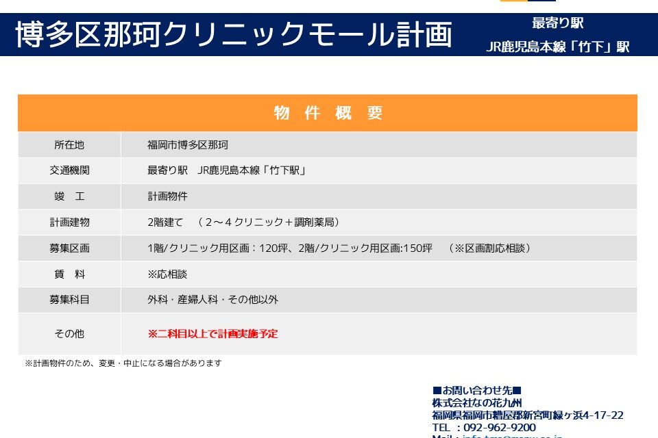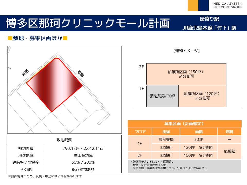 面積(坪) : | 1階:120坪、2階:150坪 (※区画割応相談) |