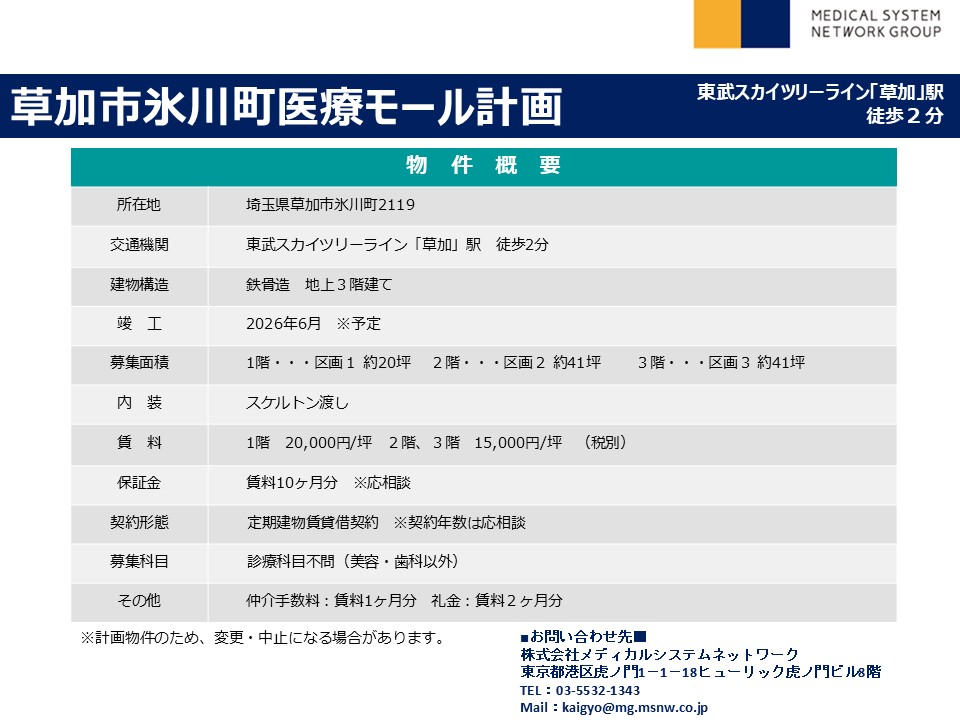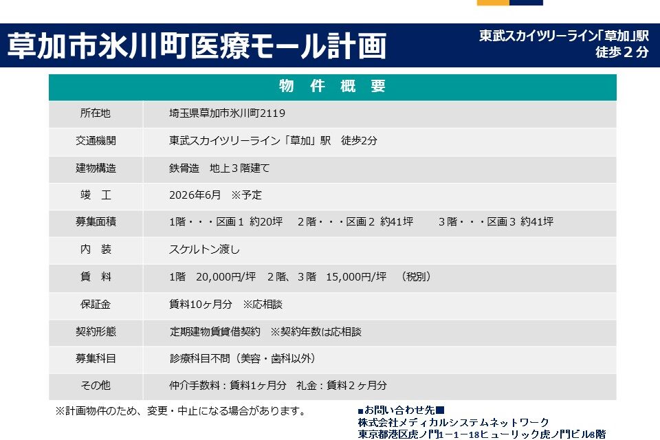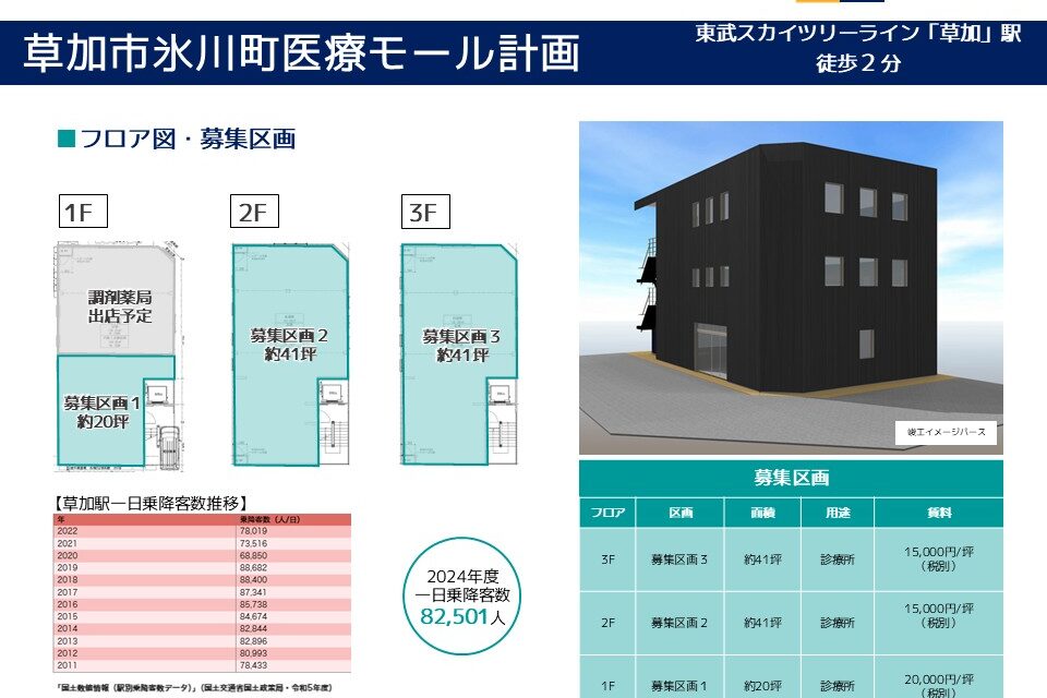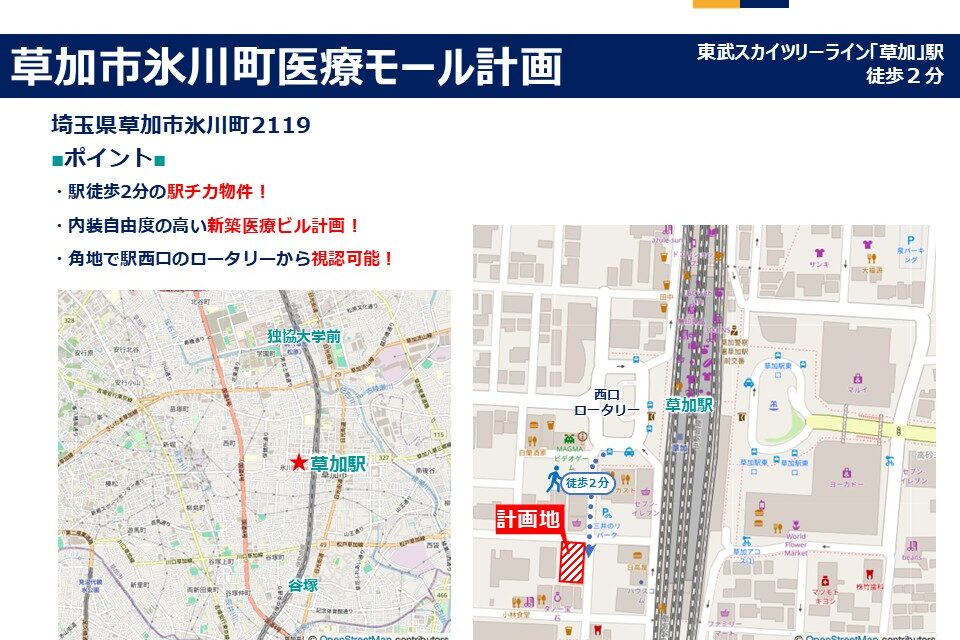 | その他 : | ・駅徒歩2分の駅チカ物件! ・内装自由度の高い新築医療ビル計画! ・角地で駅西口のロータリーから視認可能! |
