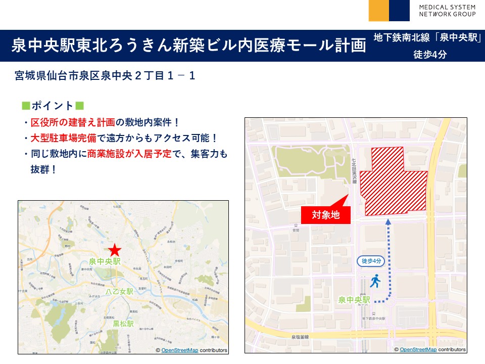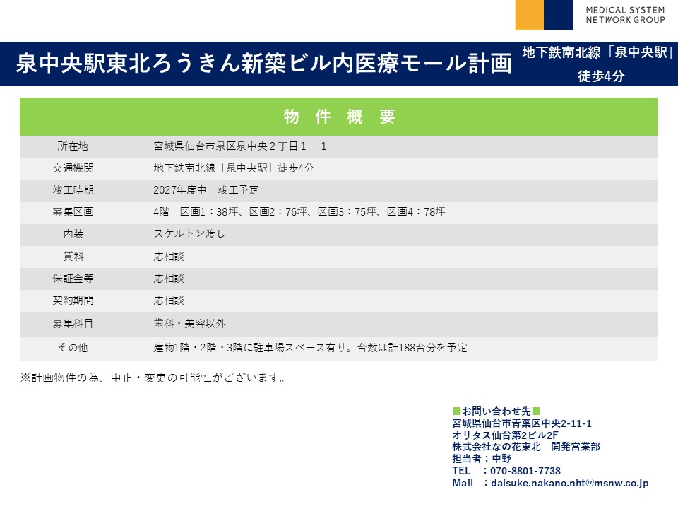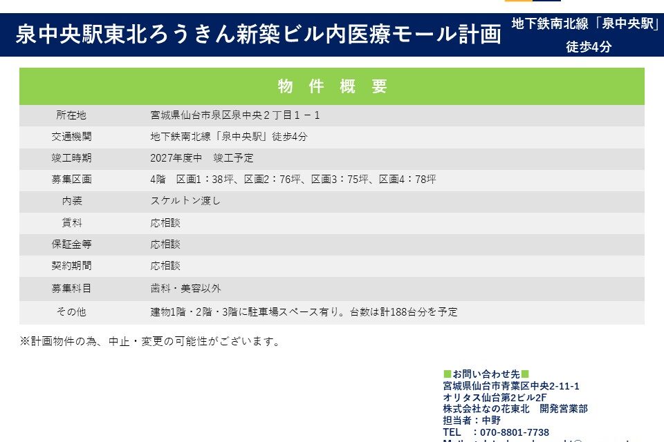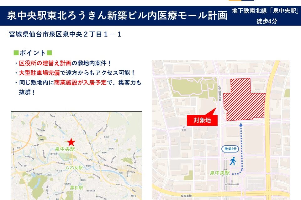 泉中央駅東北ろうきん新築ビル内医療モール計画