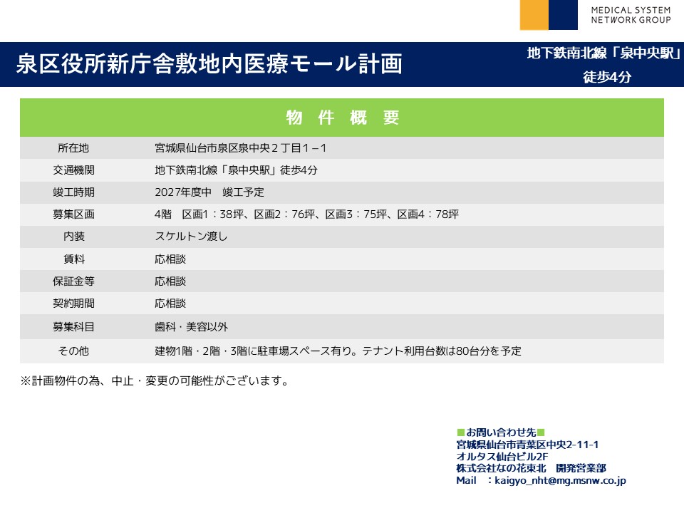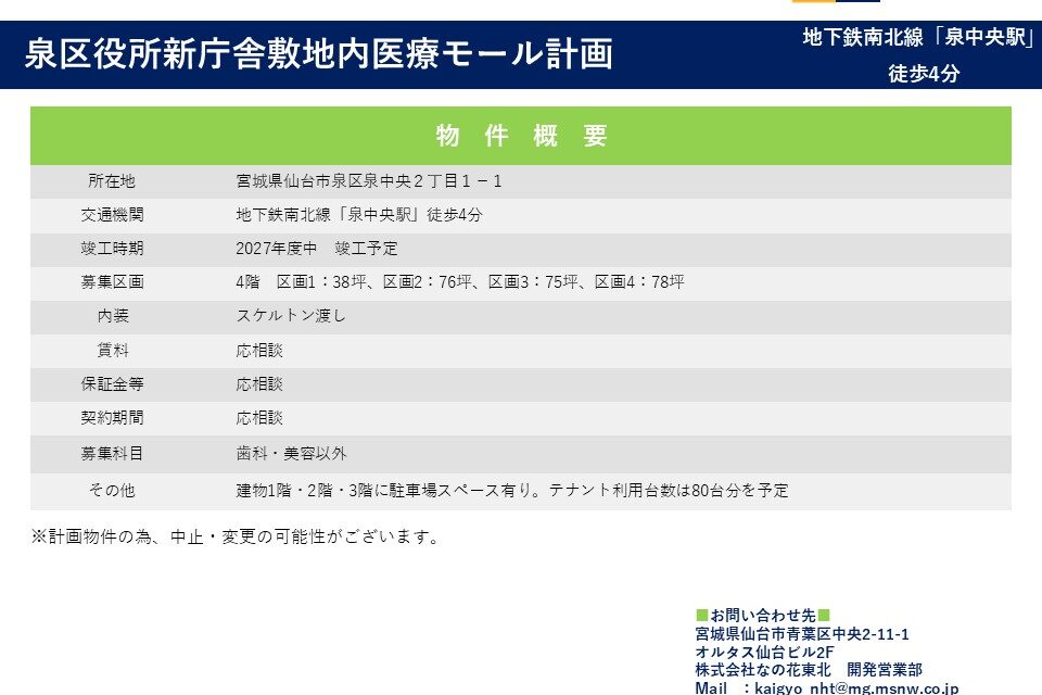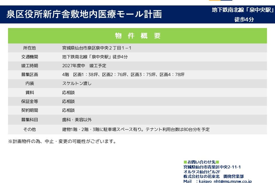 泉区役所新庁舎敷地内医療モール計画