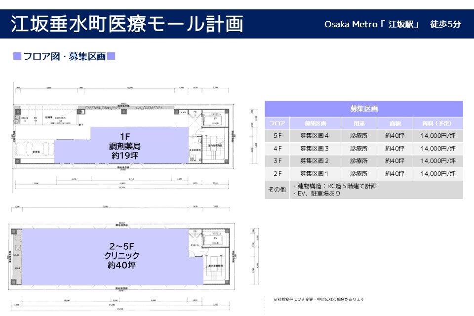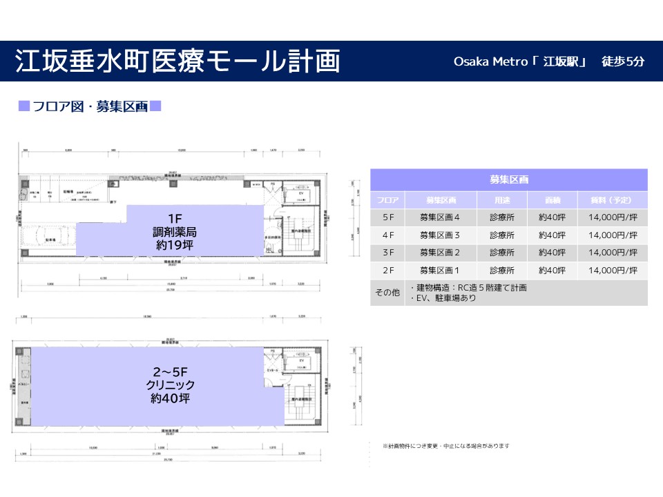 | 面積(坪) : | 募集区画2~5階全4区画 各階約40坪 |