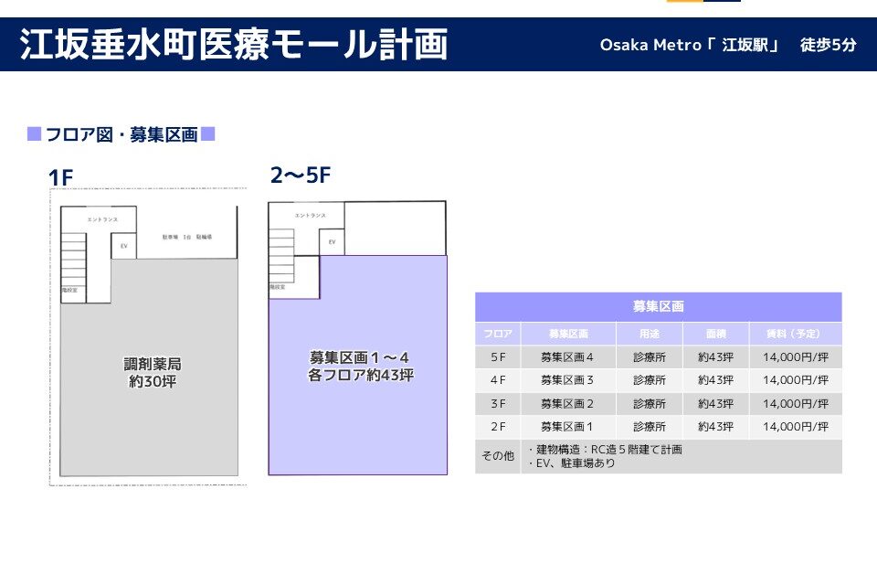 | 面積(坪) : | 募集区画2~5階全4区画 各階約43坪 |