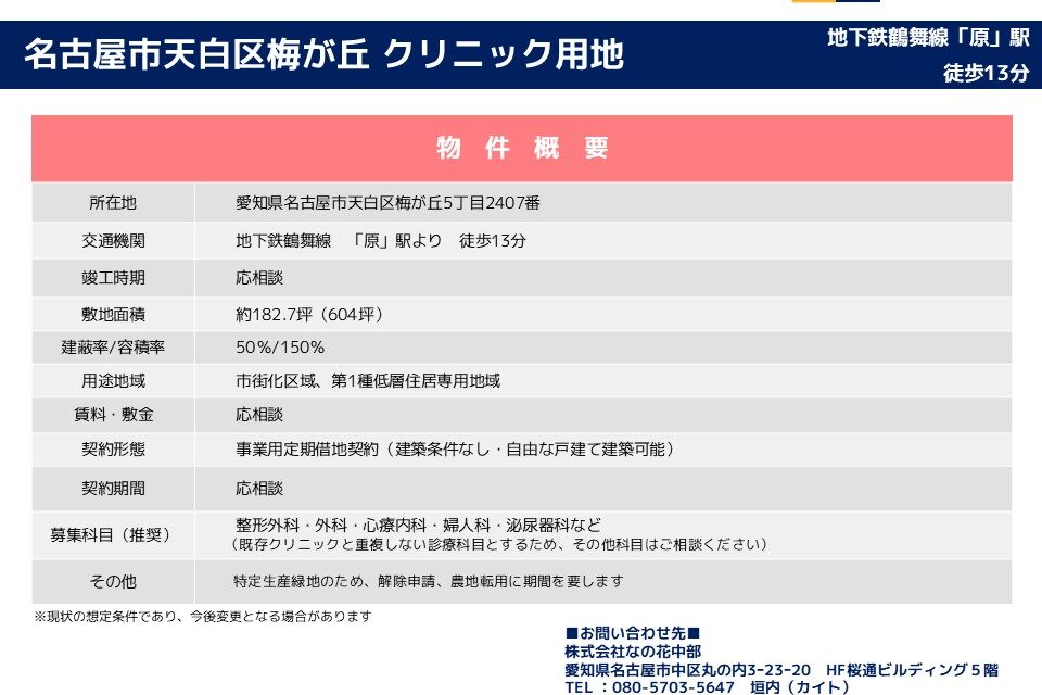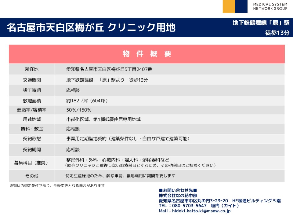 名古屋市天白区梅が丘 クリニック用地