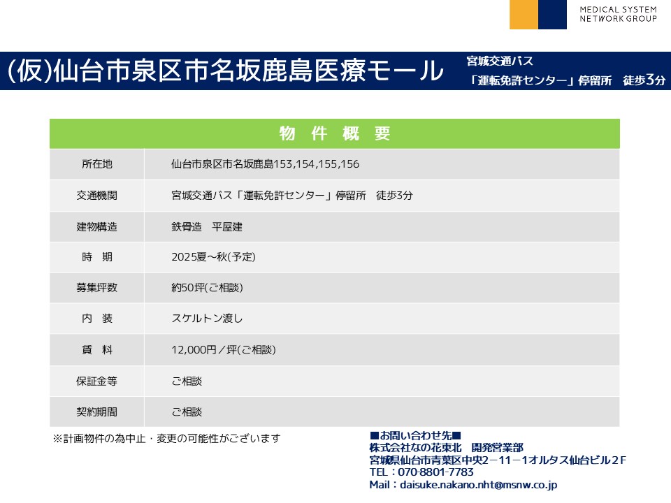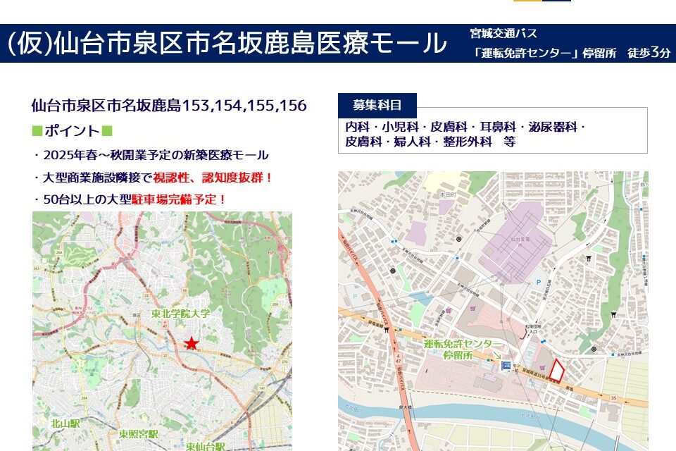 | その他 : | ◆2025年春~秋開業予定の新築医療モール |