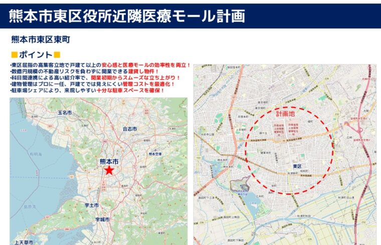 当社では、メディカルモールやメディカルビルなど複数の医療機関を同一敷地内にまとめることで、患者さまが専門医の診察を一箇所で複数受診できるという利便の良い形態の企画開発を行っています。開業する先生方にとっては、施設の共用によるコスト削減や、広報、集患面の相乗効果による効率的な経営が可能になります。