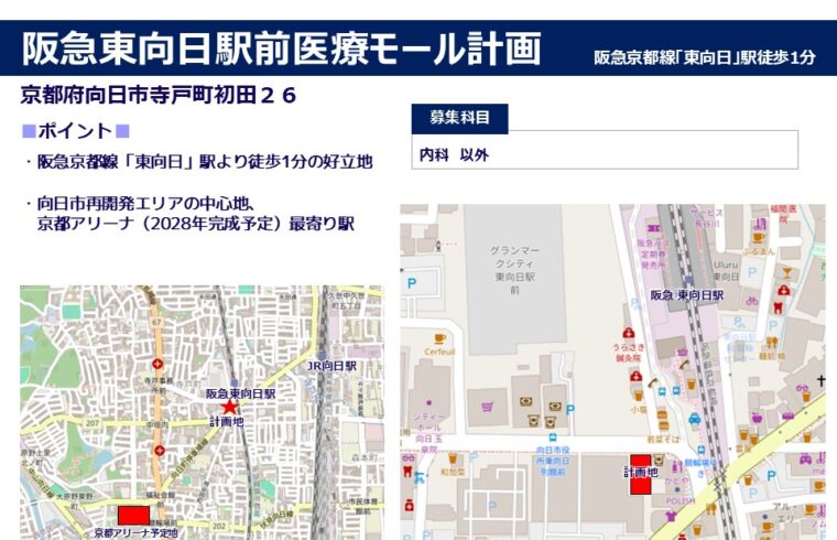 当社では、メディカルモールやメディカルビルなど複数の医療機関を同一敷地内にまとめることで、患者さまが専門医の診察を一箇所で複数受診できるという利便の良い形態の企画開発を行っています。開業する先生方にとっては、施設の共用によるコスト削減や、広報、集患面の相乗効果による効率的な経営が可能になります。
